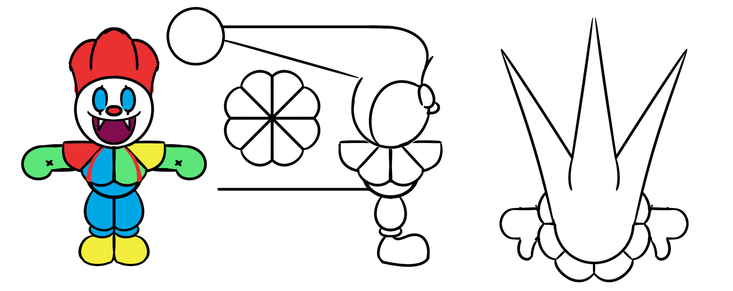 I knew that I wanted ByteSized to be a 2.5D game making use of 3D models with pixelated textures. Using a low poly art style meant I could complete models quickly and get them working in game without having to spend too much time on the art.One thing you'll notice about a lot of this art is that it's for things not in the final game. I had to cute quite a lot during the development of ByteSized! I originally wanted 2 main characters (Byte and Malvir) and a smaller generic enemy character (Nibble) and I did create designs for them, but unfortunately due to time constraints I was not able to implement them in-game as I would have liked.